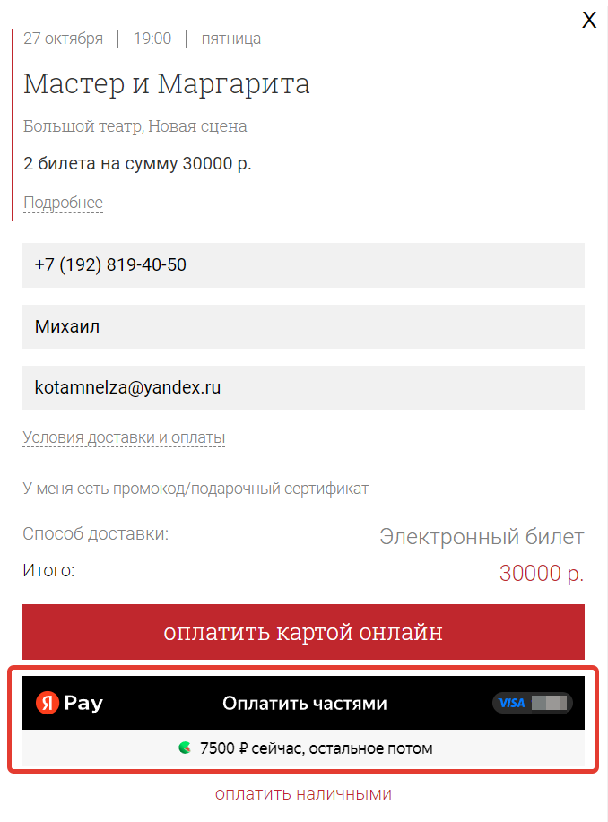 классические» на бланке театра. Электронные билеты после оплаты заказа отправляются на ваш email, вам остается их только распечатать. Условия доставки «классических» билетов описаны ниже: